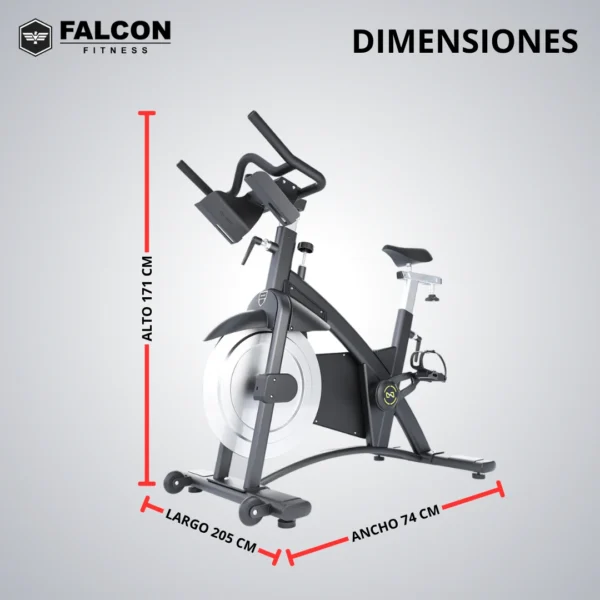 La bicicleta Spinning Falcon está diseñada para uso intenso y funcional, con un sistema de freno magnético que permite un pedaleo fluido y silencioso, ideal para rutinas exigentes. Cuenta con un volante de inercia de 14 kg de hierro fundido y un mecanismo de cadena suave, lo que garantiza durabilidad y resistencia incluso en sesiones prolongadas. Incluye freno de emergencia con almohadilla de fricción, resistencias ajustables, y soporta hasta 150 kg de peso de usuario. Además, el manubrio y asiento vienen completamente armados, y las llantitas integradas facilitan su transportación y almacenamiento.