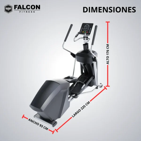 La Elíptica Falcon ofrece entrenamientos completos, variados y cómodos. Incorpora una pantalla LED que muestra en tiempo real métricas como velocidad, distancia, calorías, tiempo y pulso, lo que permite al usuario llevar un control preciso de su rendimiento. Ofrece 8 programas de entrenamiento preestablecidos, incluyendo rutinas de terreno montañoso, cardio, fuerza e intervalo, adaptables a distintos objetivos físicos. El sistema de carga es electromagnético con alimentación autónoma, gracias a un generador incorporado que evita la necesidad de conexión eléctrica. Con una estructura sólida garantizando estabilidad y durabilidad incluso en entrenamientos intensivos.