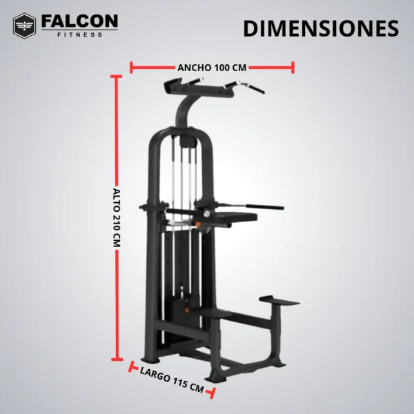 - Es una máquina dual que permite hacer dominadas y fondos asistidos