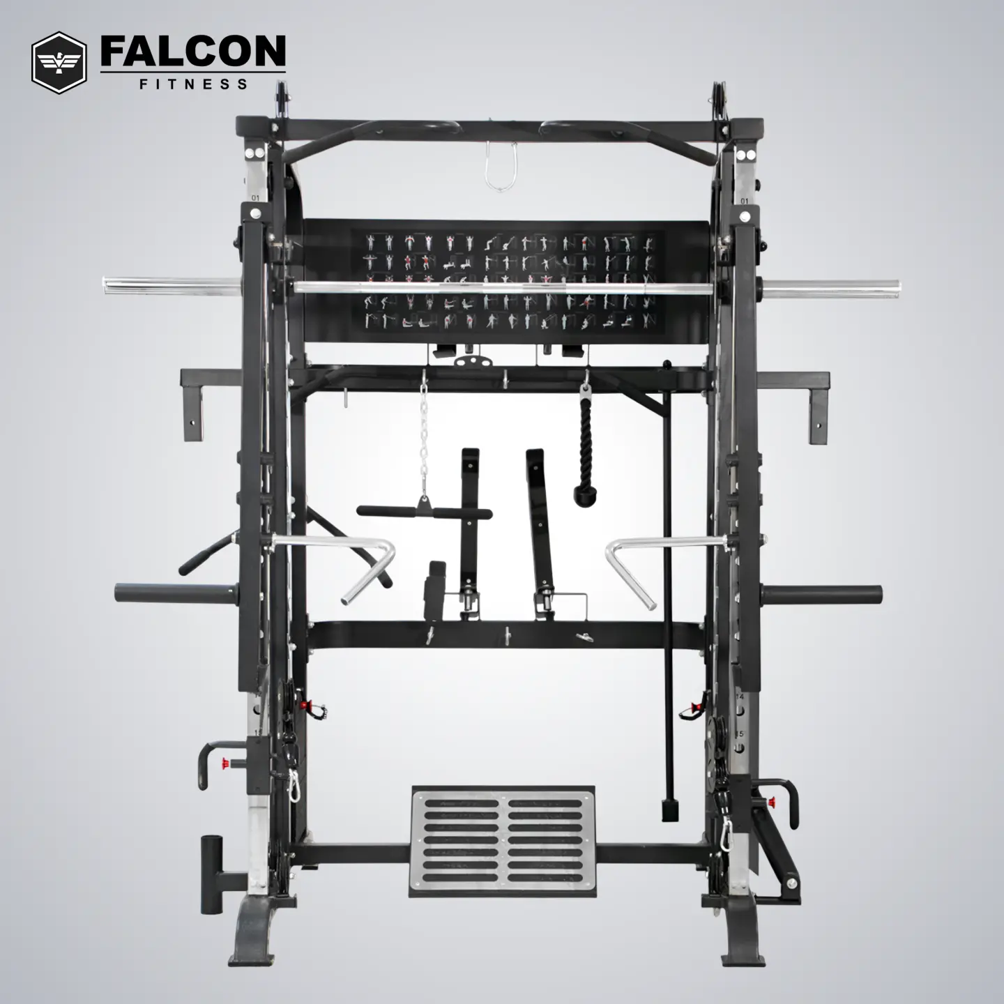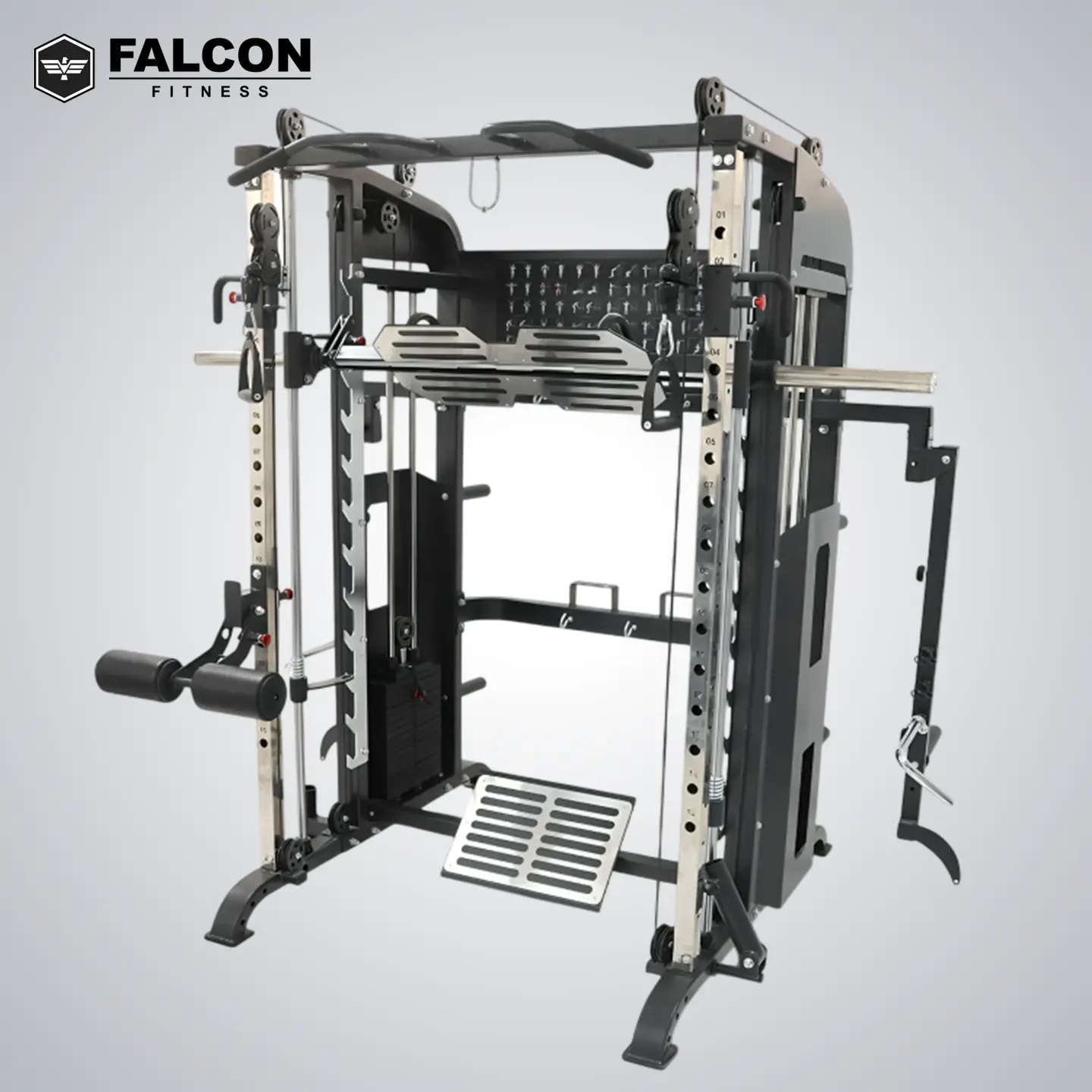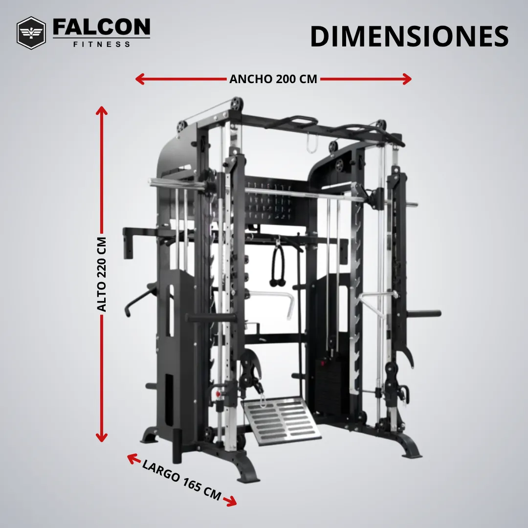 La Jaula Smith Falcon Force es perfecta para deportistas exigentes, esta máquina multi gym te permitirá hacer variedad de ejercicios en un mismo lugar. El equipo es compacto pero altamente funcional, ya que incluye aditamentos como agarres para crossover, rodillo para abdomen, plataforma para prensa, poleas ajustables, dip station, brazos para pecho entre otros. Con esta multifuncional podrás ahorrar tiempo y ejercitarte al mismo tiempo con algún compañero, mientras llevan sus entrenamientos el máximo.
