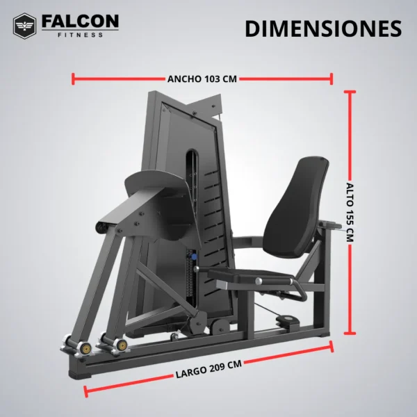 La máquina prensa de pierna para gimnasio, ayuda a ejercitar los cuádriceps, con esta máquina se puede ir agregando poco peso e ir ganando fuerza y resistencia de manera gradual. Su rango de movimiento permite mantener las piernas tensionadas, ayudando al aumento del músculo.