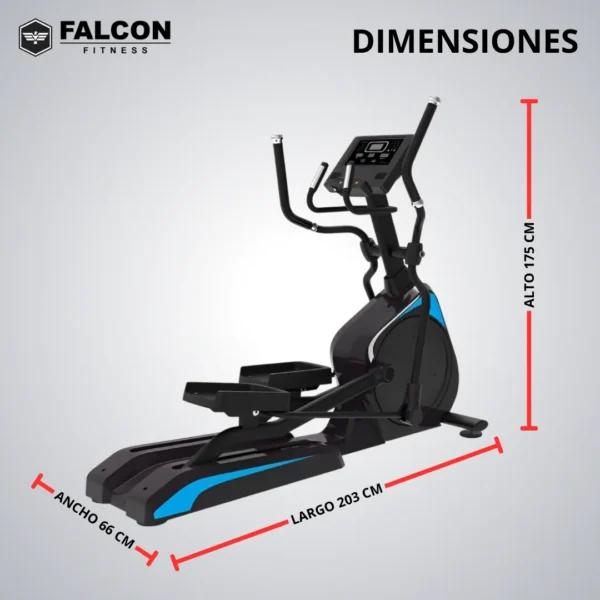 La máquina elíptica cuenta con una pantalla LED que muestra información clave como velocidad, distancia, calorías, tiempo y pulso, brindando un monitoreo constante de tu rendimiento. Su diseño en color negro con detalles azules le da un toque moderno y atractivo. Incluye 8 programas de entrenamiento preestablecidos más 2 adicionales, como terreno montañoso, cardio, fuerza e intervalos, para ofrecer una variedad de opciones según tus objetivos. Su sistema de carga electromagnético con alimentación autónoma mediante generador incorporado garantiza eficiencia energética.
